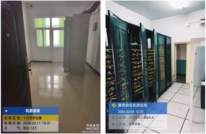 聚焦安全底线,筑牢网络防护屏障。寒假期间,网络安全保障时刻在线。信息处持续强化网络安全监测与分析,加大校园网络安全巡查频次,扎实完成省厅部署的 3 项专项排查处置任务,定期巡检三校区机房、配线间。严格执行 7×24 小时值班值守,高效响应校园网咨询与故障报修,认真做好公共服务平台、一卡通、门禁系统等日常维护,以全天候坚守为学校各项工作平稳运行筑牢数字安全屏障。
