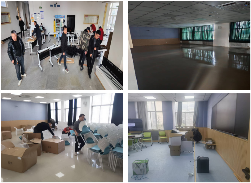 聚焦育人需求,打造智慧教学场景。智慧教室建设全速推进、如期见效。信息处联合教务处强化与施工单位的协同联动,严格倒排工期、压实节点进度,高效完成 20 间智慧教室建设任务,涵盖老旧桌椅拆除、环境改造、设备安装调试、新桌椅布设等工作,功能布局与硬件条件均满足新学期大学生创新大赛等重要活动使用要求,有力提升教学空间智能化水平。